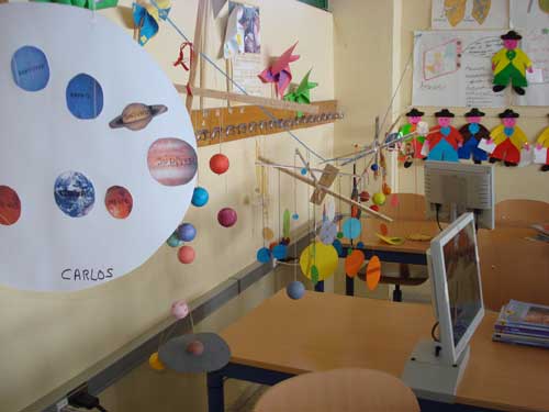 Como complemento a las actividades realizadas en clase en la materia de Conocimiento del Medio, los alumnos de 4º A han realizado una serie de trabajos manuales relativos al tema de los planetas.