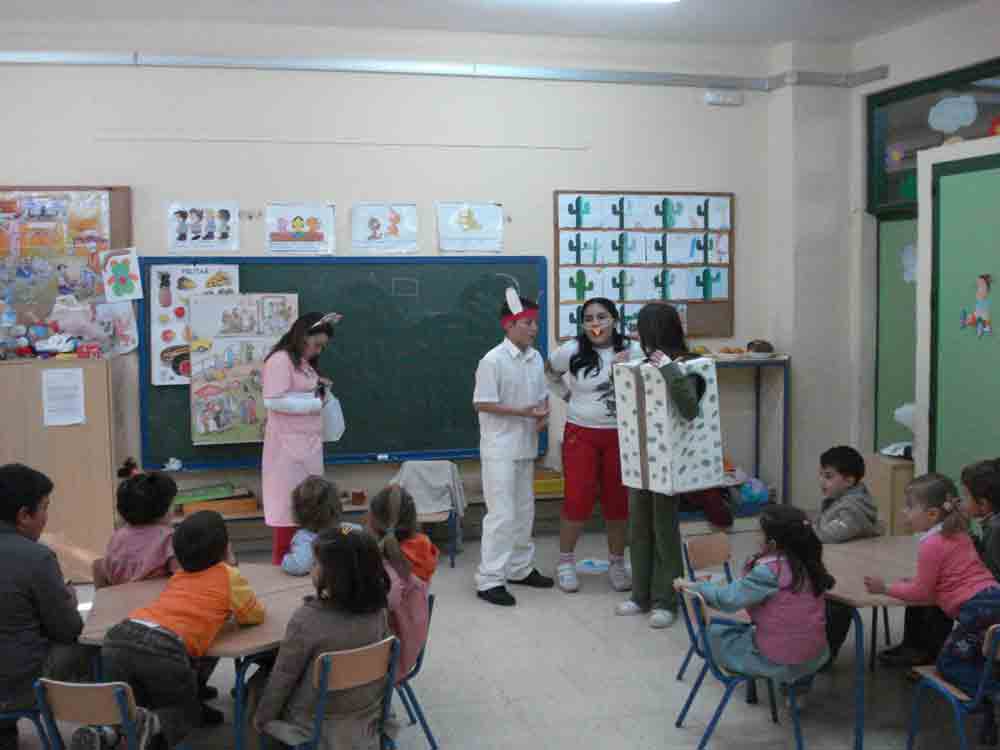 Los alumnos y alumnas de 5º representaron los cuentos: "Los tres cerditos" "Caperucita roja" y La liebre y la tortuga" a los más chiquitines del Colegio, disfrutaron y aprendieron todos chicos y grandes.