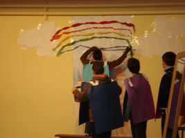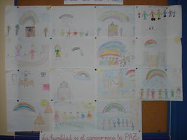 La actividad más significativa se desarrolló el viernes coincidiendo con la celebración del DENIP. A partir de las 12 horas, en el gimnasio del centro, todos los alumnos/as participaron en un acto, en el que los alumnos/as de 6º leyeron un manifiesto por la Paz, una parábola de la carreta vacía , consejos para lograr la humildad e interpretaron un cuento titulado “Los siete caballeros de colores”, finalizamos cantando y bailando la canción “Humildad” de Shaila Durcal.