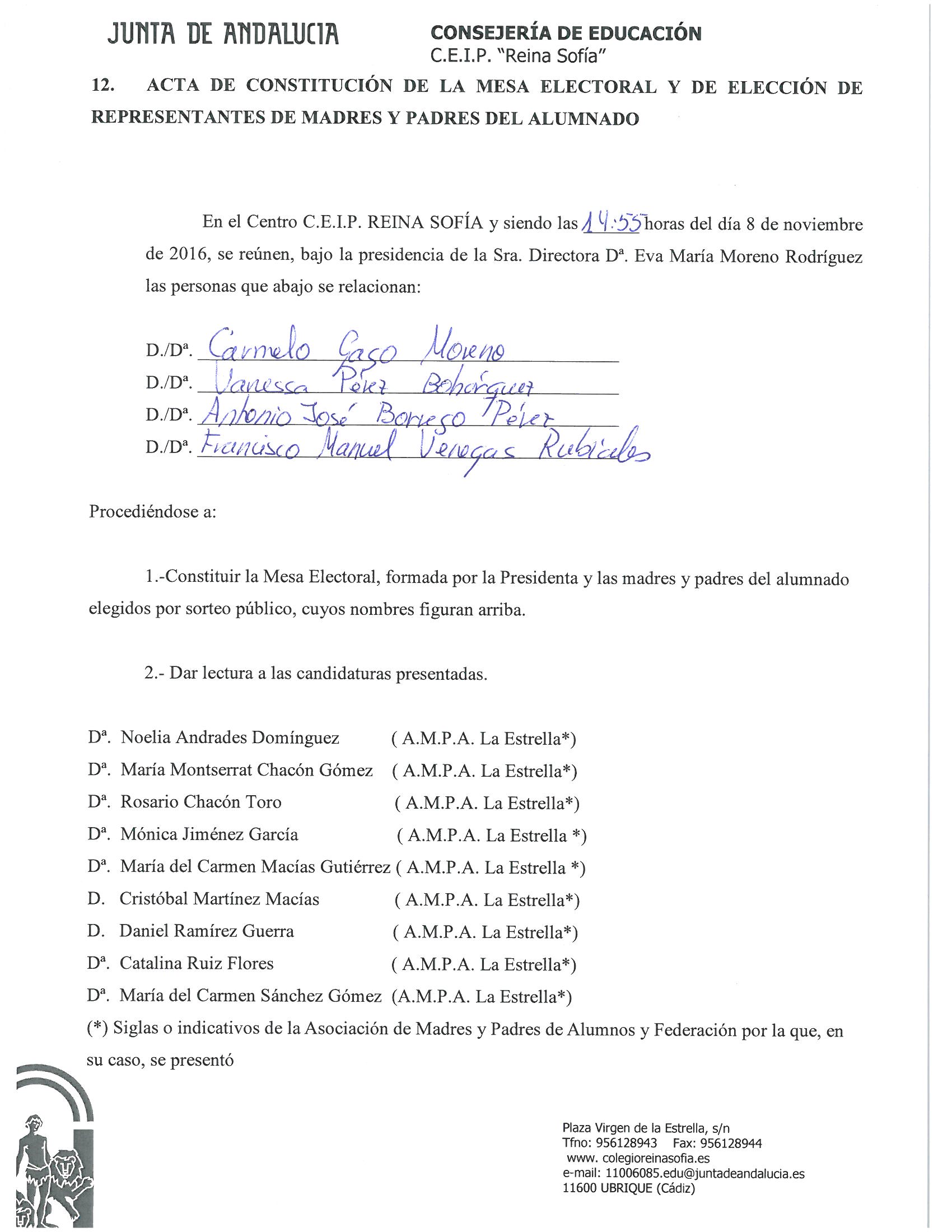 En el sorteo público celebrado en este Centro, hoy día 26, a las 09:10 horas, para formar la MESA ELECTORAL en las …