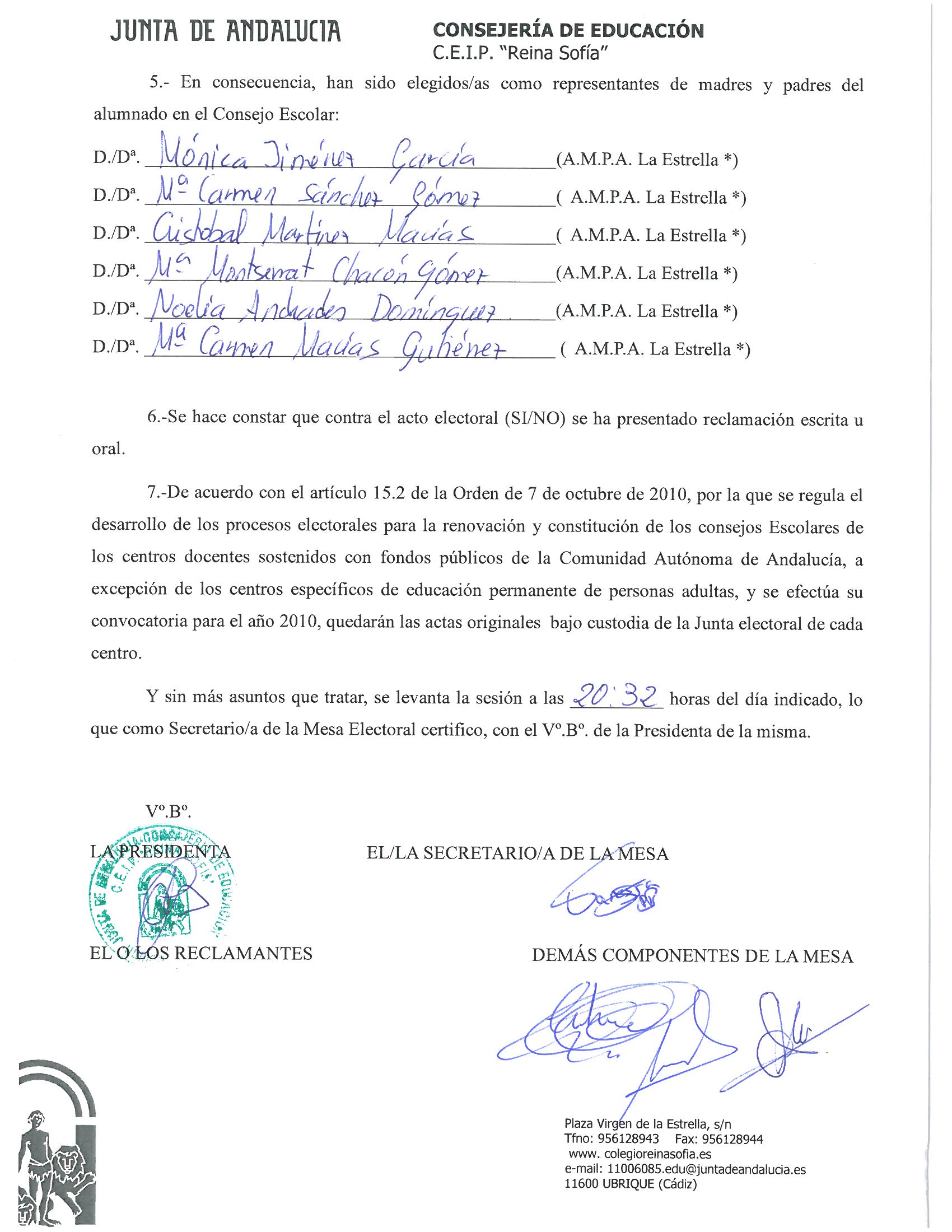 CENTRO: C.E.I.P. REINA SOFÍA En cumplimiento de lo establecido en el artículo 4 de la Orden de 7 de octubre de 2010, …