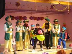 Y la novedad de este año fue la presentación en directo de todos los personajes de los dibujos animados de la tele: Pocoyo, Bob Esponja, Patricio, Dora Exploradora, Caillou, etc. Muy bien caracterizados y representados por las madres del centro.